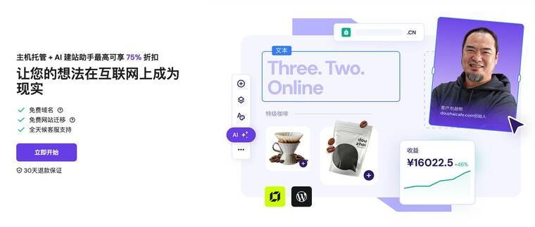 - Hostinger 提供超低價主機+ 免費網域+ 一鍵安裝WordPress,非常適合預算有限的新手。